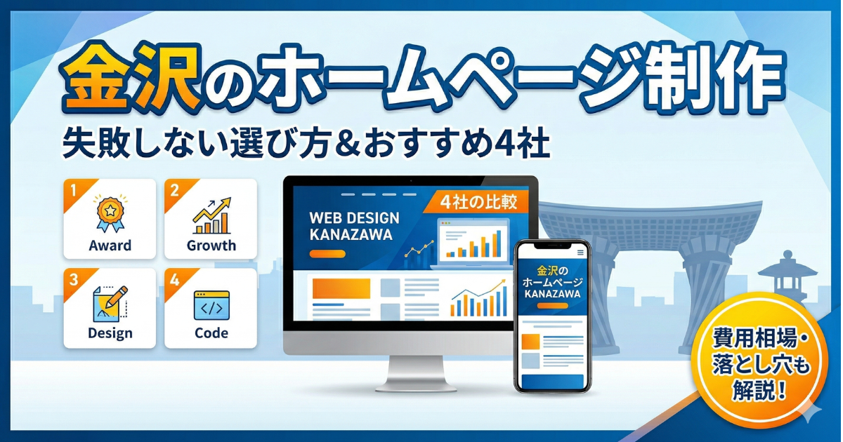 「金沢でホームページを作りたいが、どこに頼めばいいかわからない」と感じている事業者の方は少なくありません。 この記事では、金沢エリアで実績を持つ制作会社4社の特徴・費用の全体像・失敗しない選び方の3軸をまとめています。 「自社に合う1社」を絞り込む判断材料として活用してください。 比較項目 初期費用 20〜50万円程度(要確認) 0〜数万円(要確認) 0円または低額(要確認) 15〜80万円程度(要確認) 月額費用 別途保守プランあり(要確認) 10,000円(税別・要確認) 9,900円(税込・要確認) ...